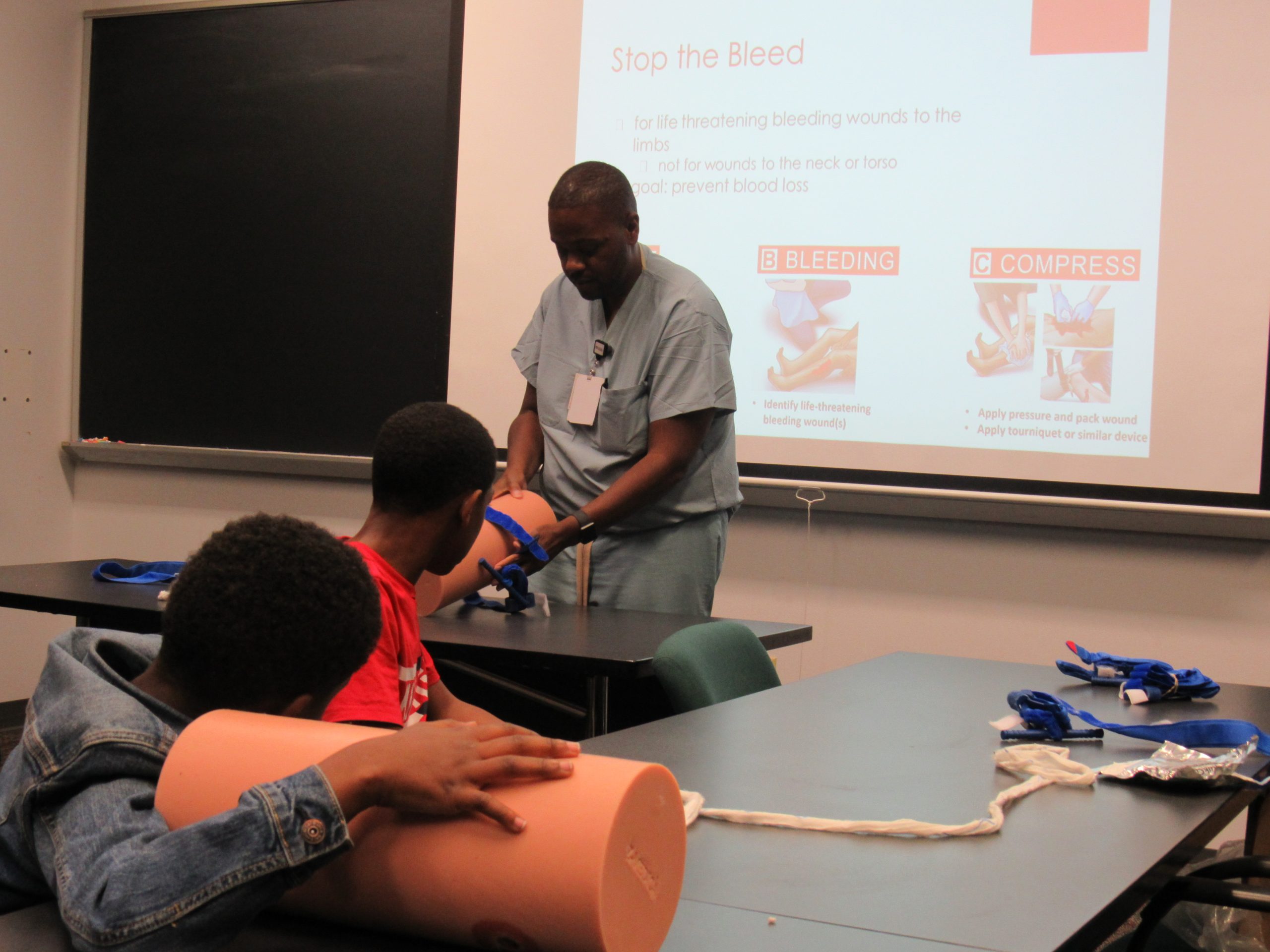 TTP families attended the first Community Day last spring at the UCEM. So families were invited back for Health Night to learn about emergency medicine practices. This included life-saving first-aid tips like CPR and and Stop the Bleed of fatal wounds. Families also got to interact with and ask questions of the medical technology residents and attendants.