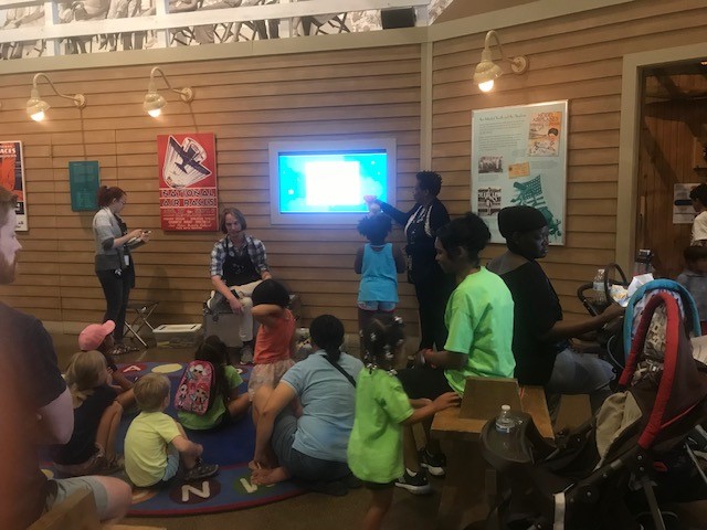 Following the live demonstration, parents and our youngest Turning the Page students enjoyed a story time. Older students continued to investigate the scientific principles of flight. These included force, gravity, friction and velocity to name a few, in the interactive “How Things Fly” exhibit. The exhibit provides a hands-on experience that allows students to learn about and apply principles of flight through play, simultaneously.